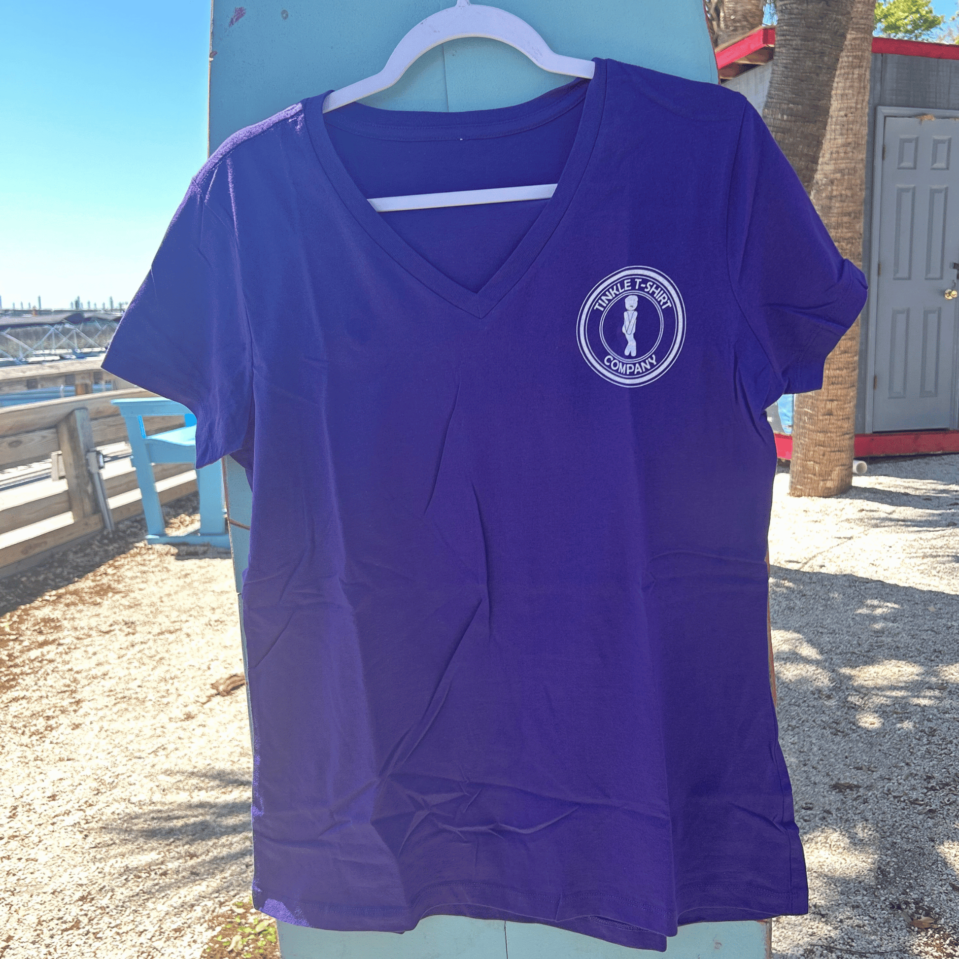 "Ocean Tinkler – Heather Purple Ladies’ V-Neck | Playful & Beach-Ready!"
